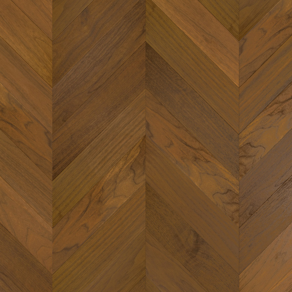 Америсканкий орех французской ёлочкой на полу — это настоящее украшение интерьера. Глубокий, тёплый оттенок дерева, живая текстура и рисунок придают полу характер и стиль. Это дорогая сдержанная элегантность на каждый день.